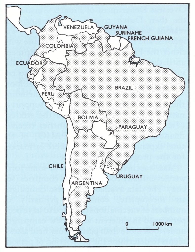 Fig. 12.2. South America: areas in which systematic mass vaccination programmes were completed, 1967-1972.