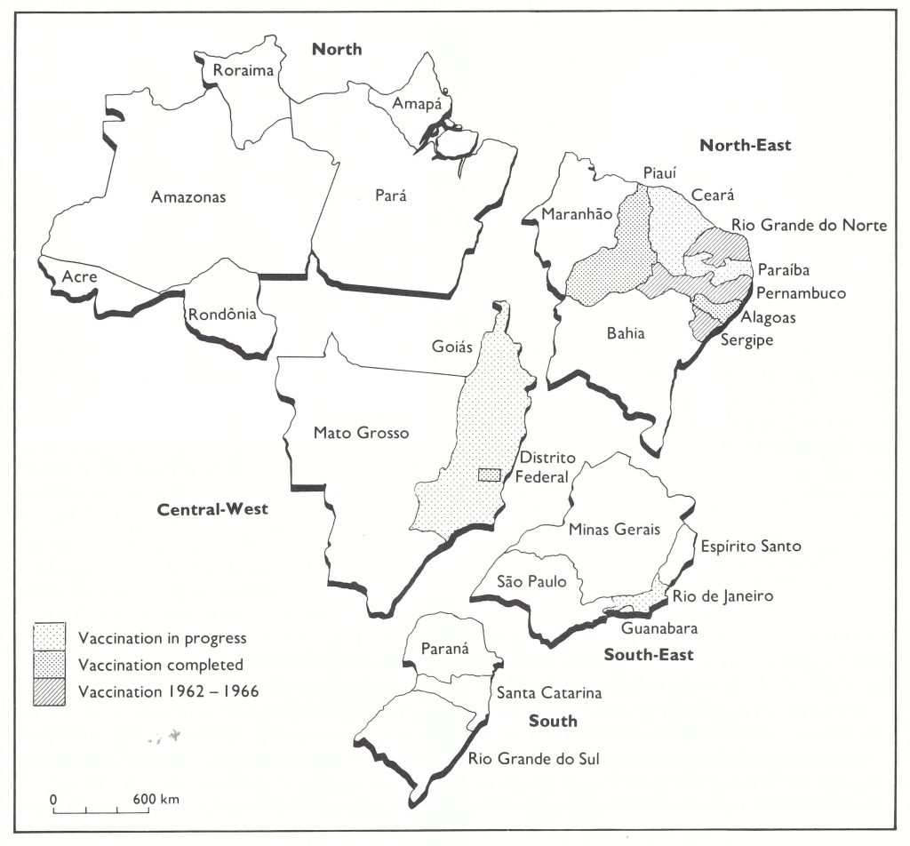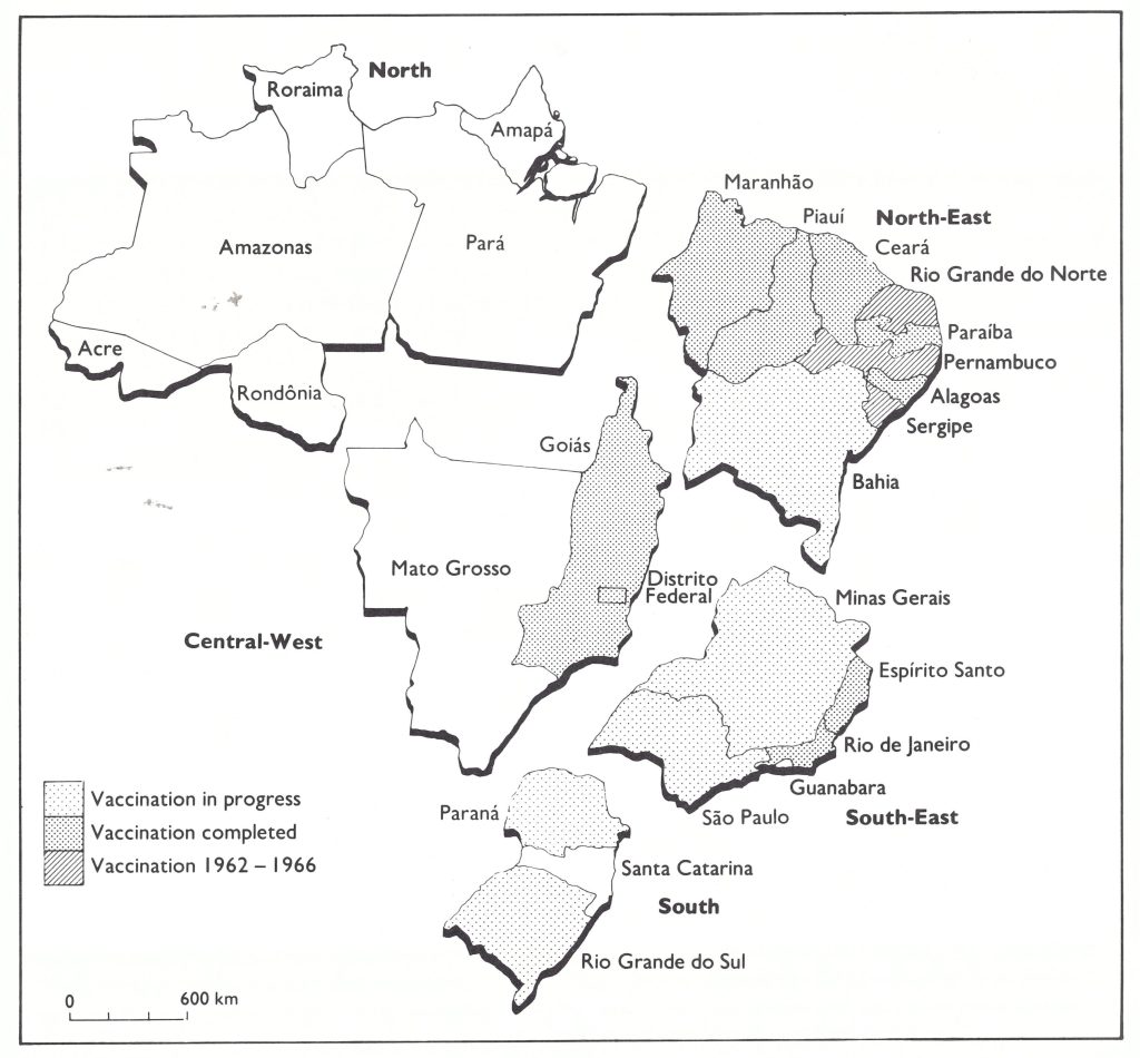Fig. 12.4. Brazil: status of the smallpox vaccination program, by region, December 1967.