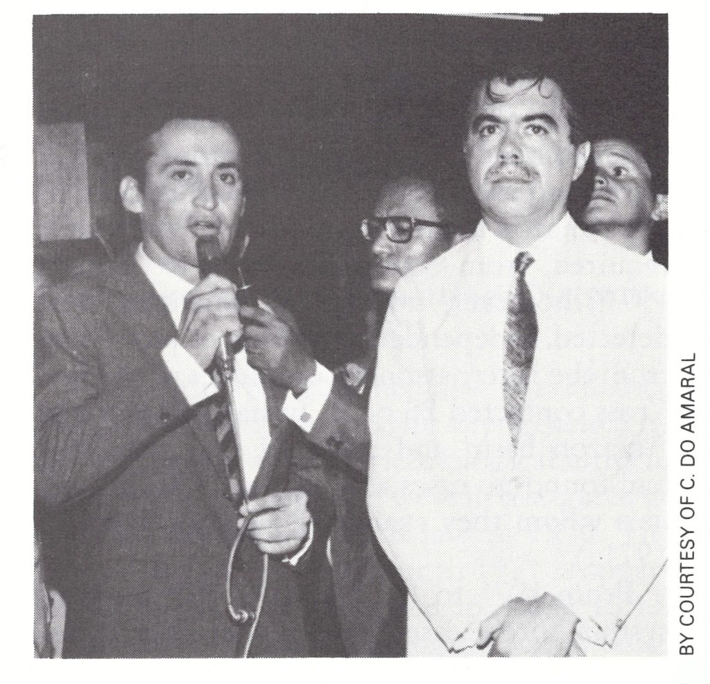 Plate 12.11. Claudio do Amaral (b . 1934) speaking at the inauguration of the Maranhao State programme, 1969. With him is the Governor, Jose Sarney, who became President of Brazil in 1985. After 3 years of service in organizing state vaccination campaigns, do Amaral became the national programme director and developed Brazil’s morbidity reporting system.