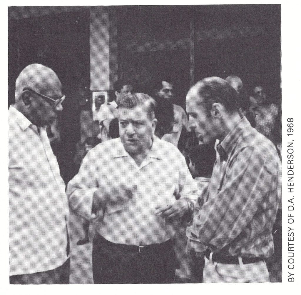 Plate 12.6. Oswaldo Jose da Silva (b . 1907), in the centre, was director of the national programme in Brazil, 1967-1968. A former malariologist and PAHO staff member, he was a skilful administrator and was responsible for the establishment of Brazil’s national vaccination campaign structure. With him are K .S. Ramakrishnan from the WHO Regional Office in New Delhi and John Copland, administrative officer of the Smallpox Eradication unit in Geneva from 1967 to 1977.