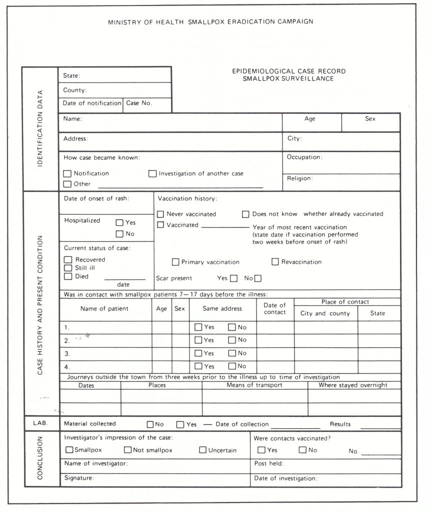 2. To establish and maintain contact with hospitals, physicians, schools, community leaders and any other persons who might be aware of the existence of possible smallpox cases.