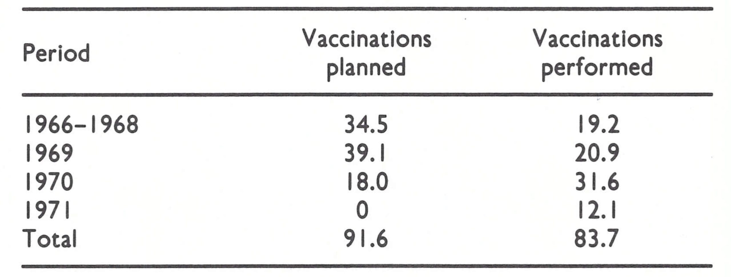 Table 12.6: Brazil: numbers of vaccinations planned and performed in the mass caompaign, 1966-1971 (millions) a