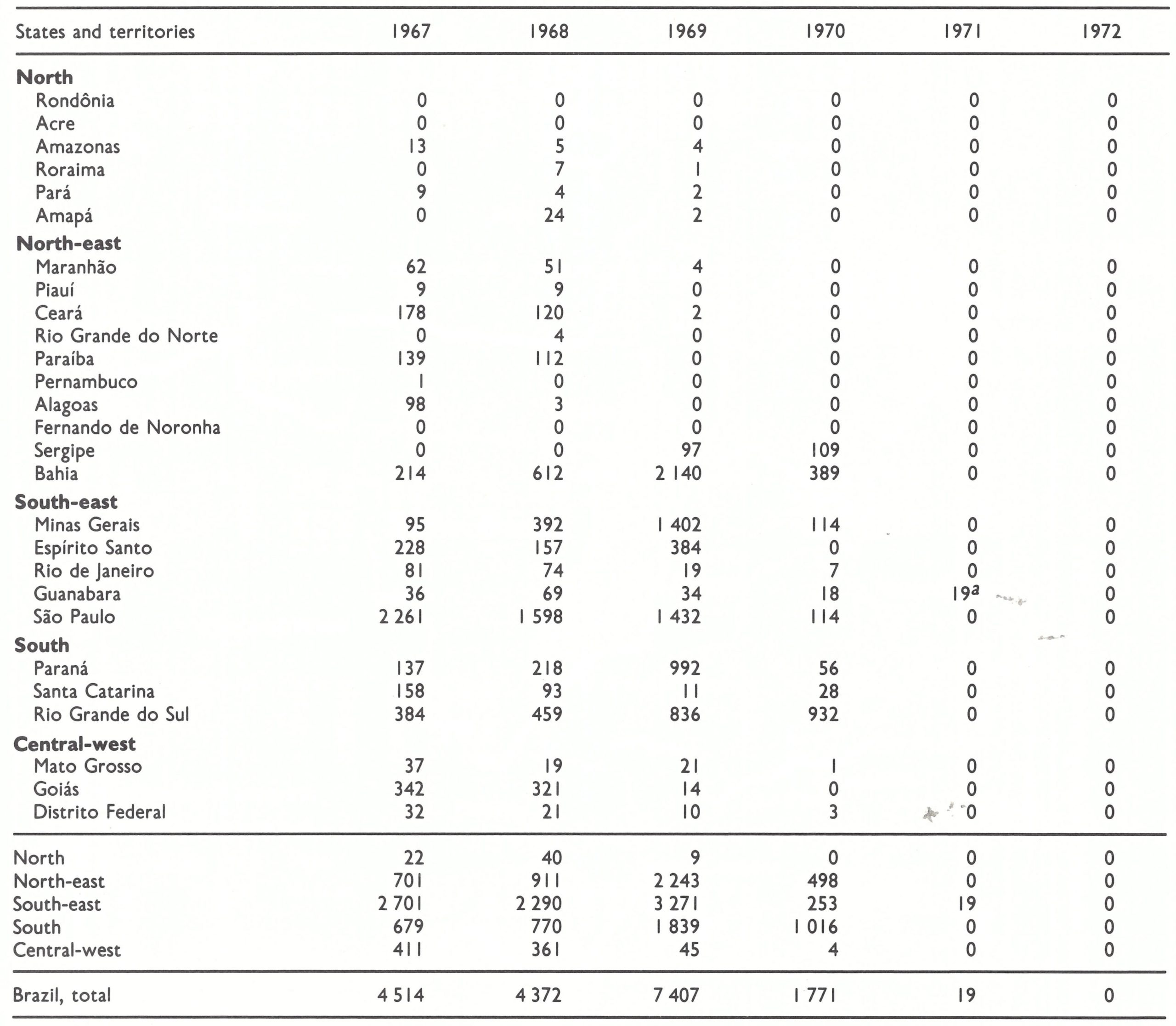 aExcludes the states of Parana, Minas Gerais, Bahia and Rio Grande do Sul, I n which special programmes of investigation were conducted (see text).