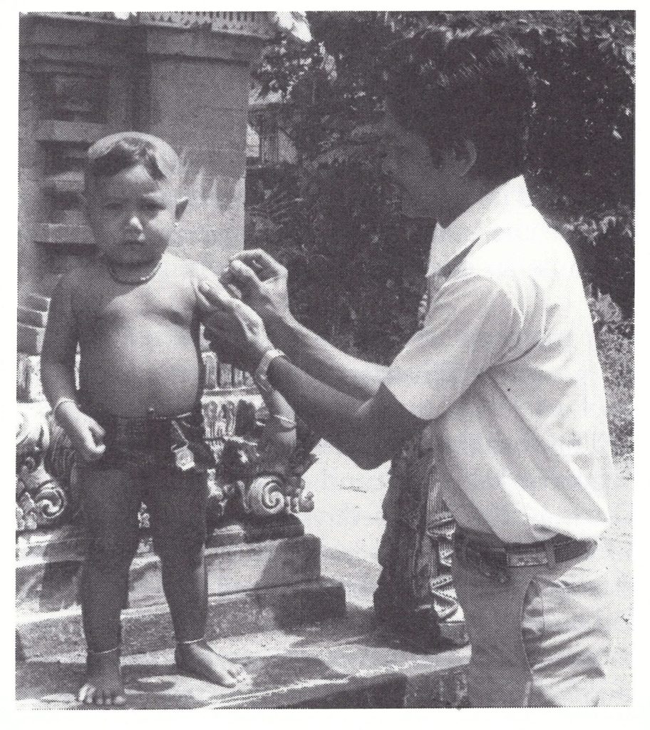 Plate 13.6. Vaccinators in Indonesia moved from house to house, concentrating their efforts on young children and infants who had not been vaccinated previously. For this work, the bifurcated needle was especially valuable.