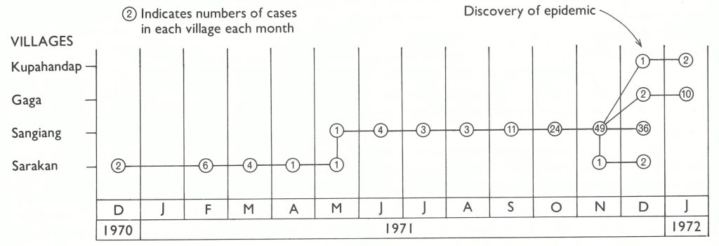 Fig. 13.10. Indonesia: last chain of smallpox transmission, 1970-1972.