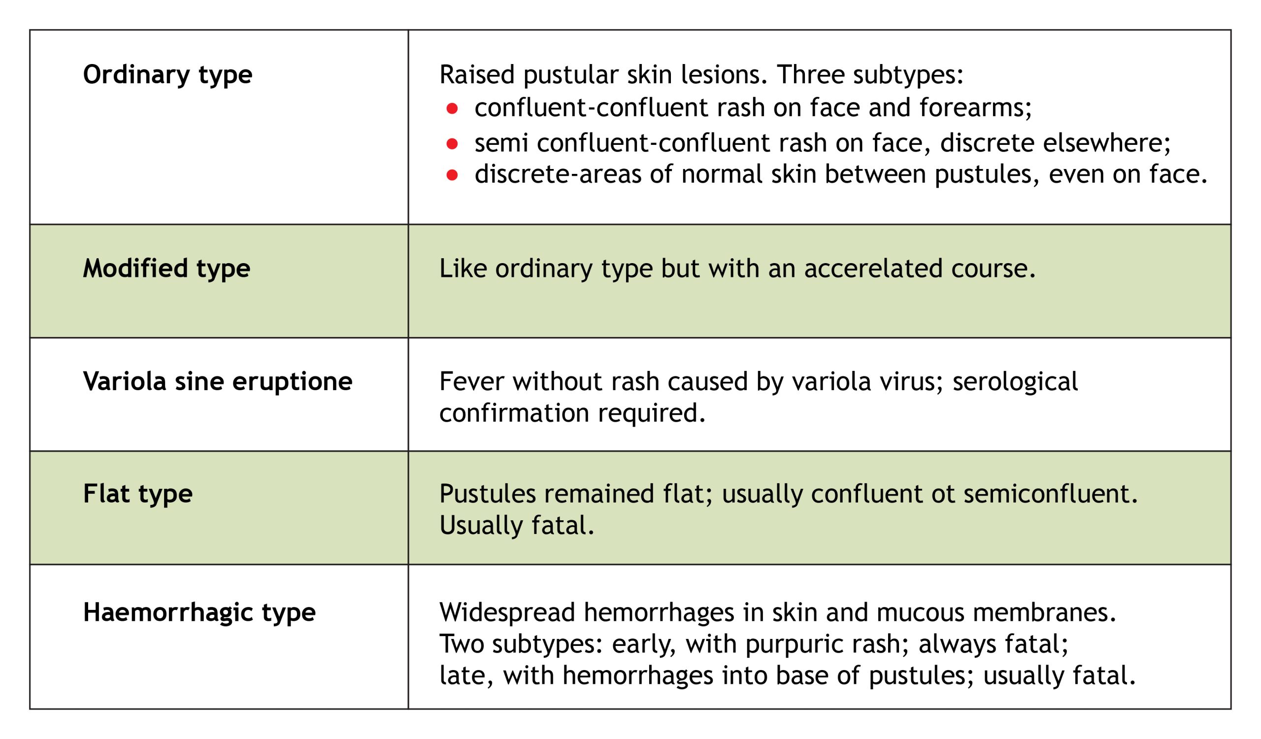 THE CLASSIFICATION OF CLINICAL TYPES OF VARIOLA MAJOR