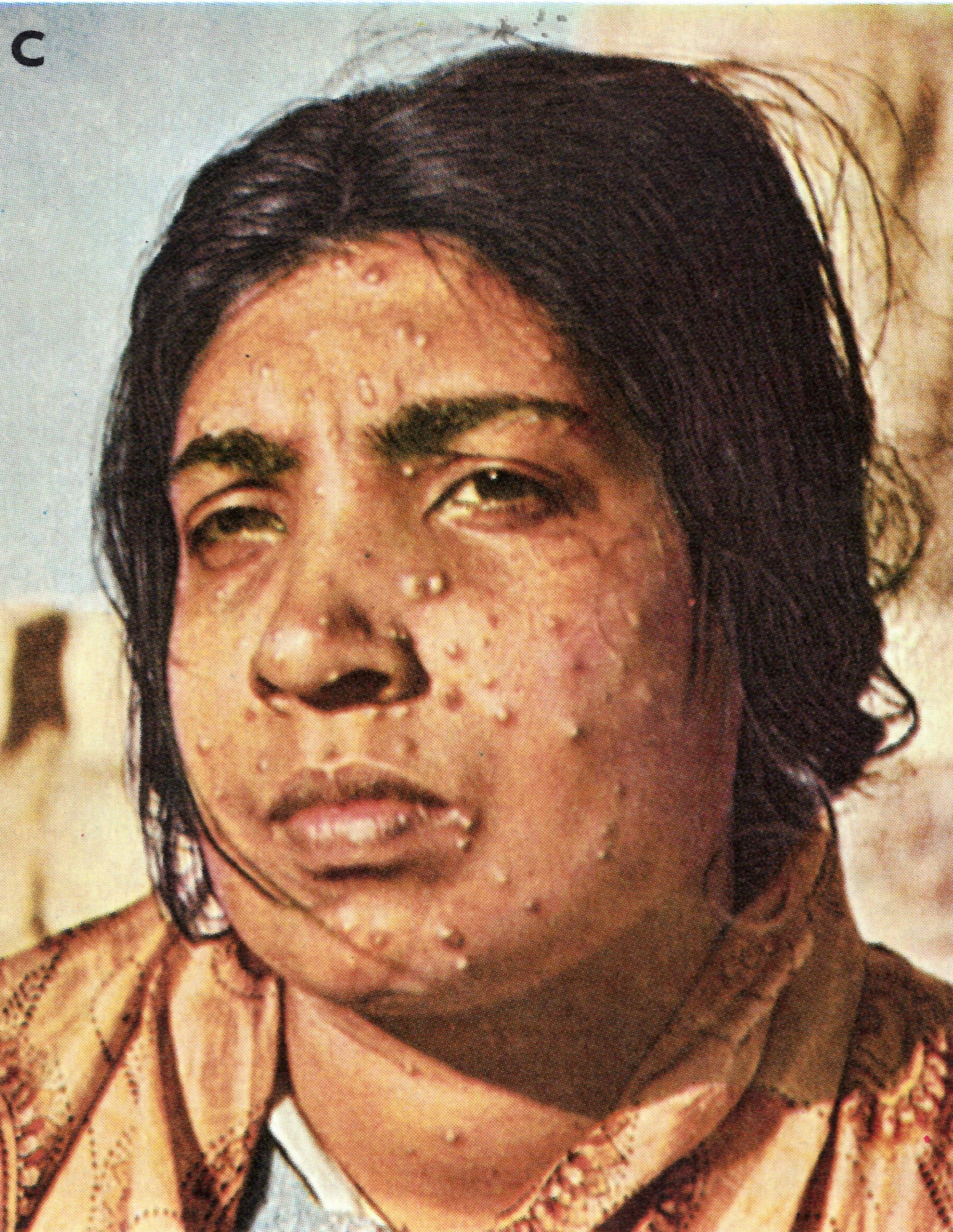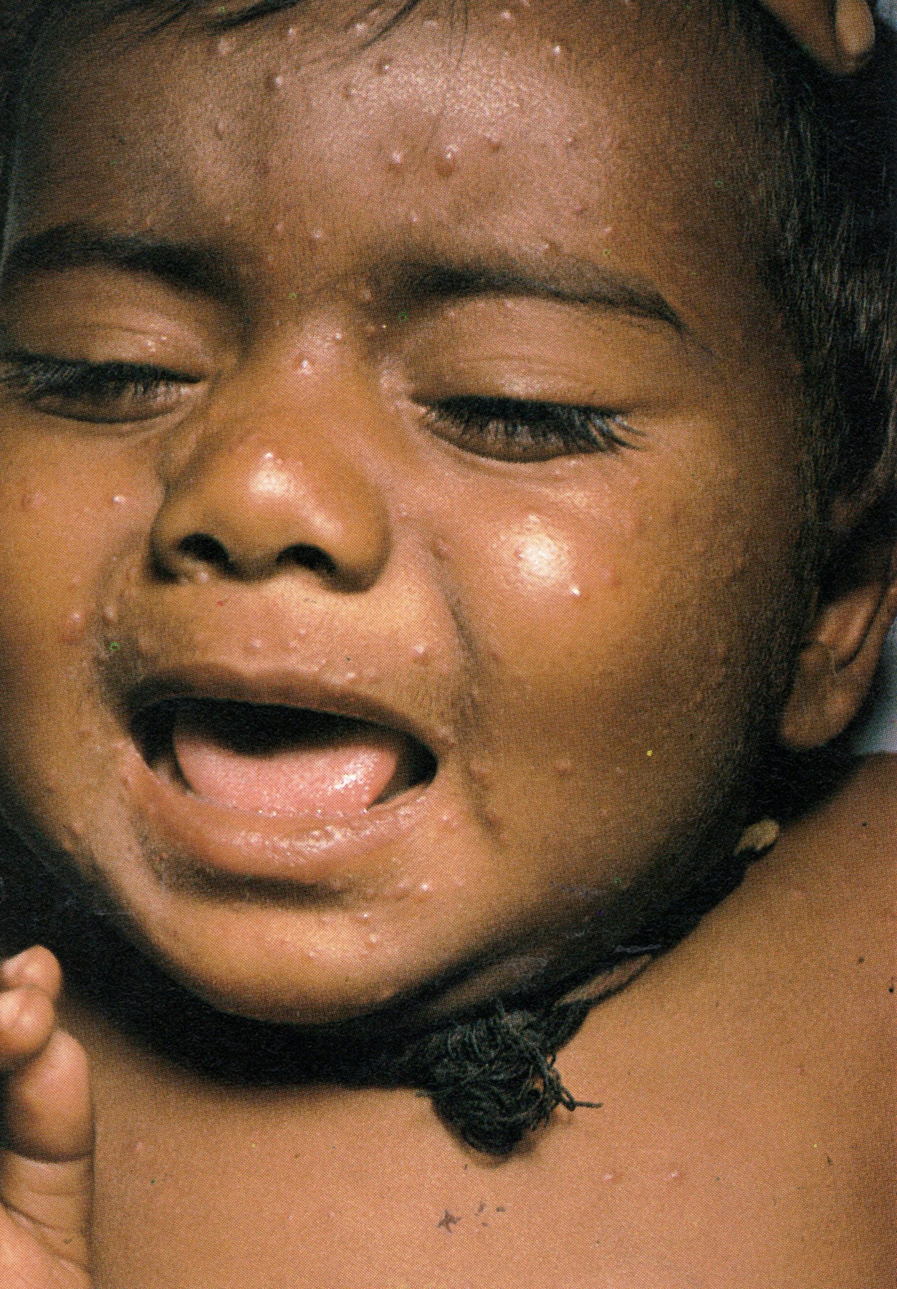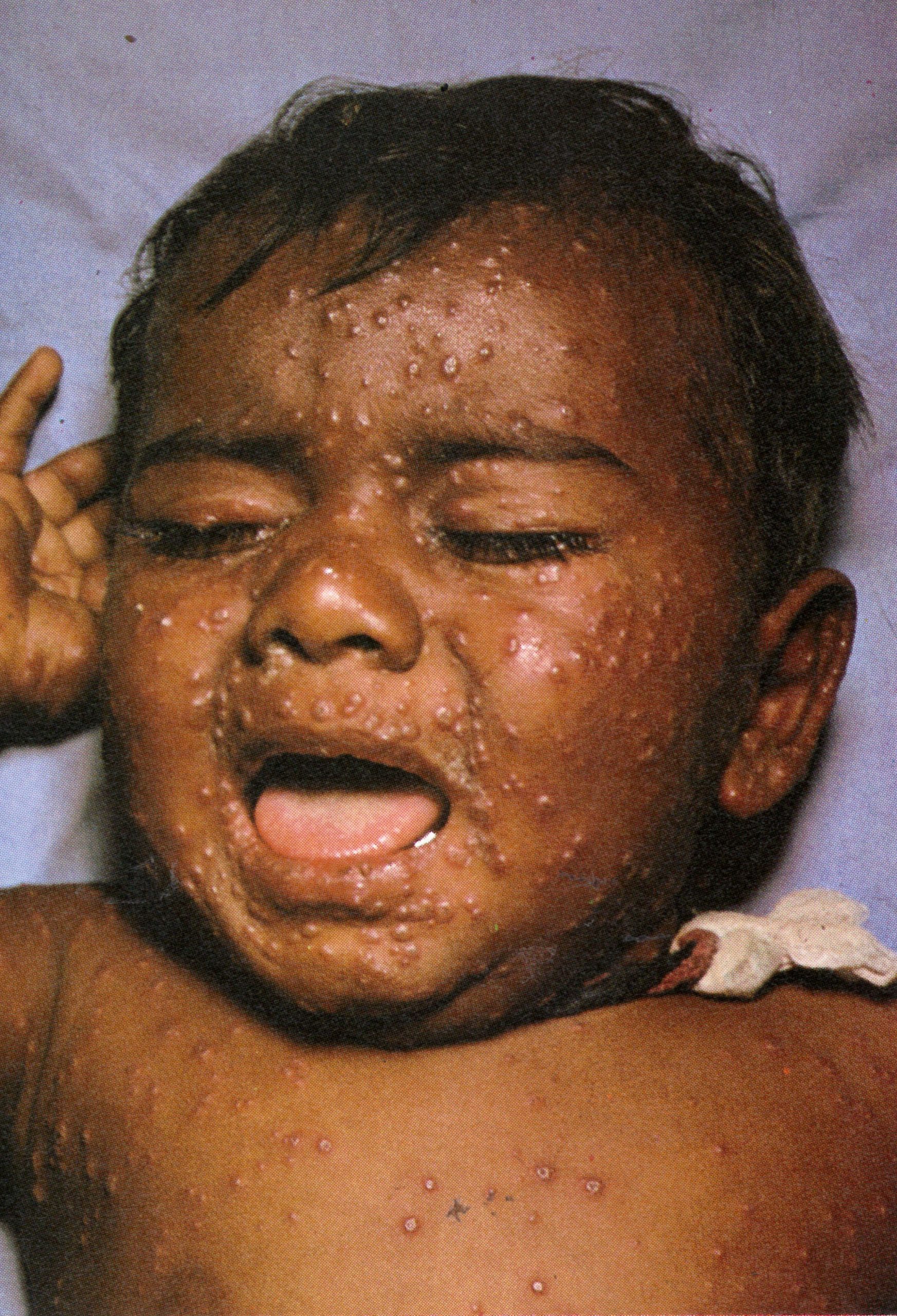 The plan of the present chapter follows Ricketts in that the account of the clinical features of smallpox consists mainly of a description of the rash, based on photographs of patients, most of which were prepared during the global smallpox eradication pro gramme. Because smallpox is now extinct, we have to take the unusual step, in the clinical description of a human disease, of referring to it in the past tense; this was previously the case only)1 with diseases that apparently disappeared and could be identified only by con temporary descriptions, such as the “English sweat”, or the “sweating sickness”.