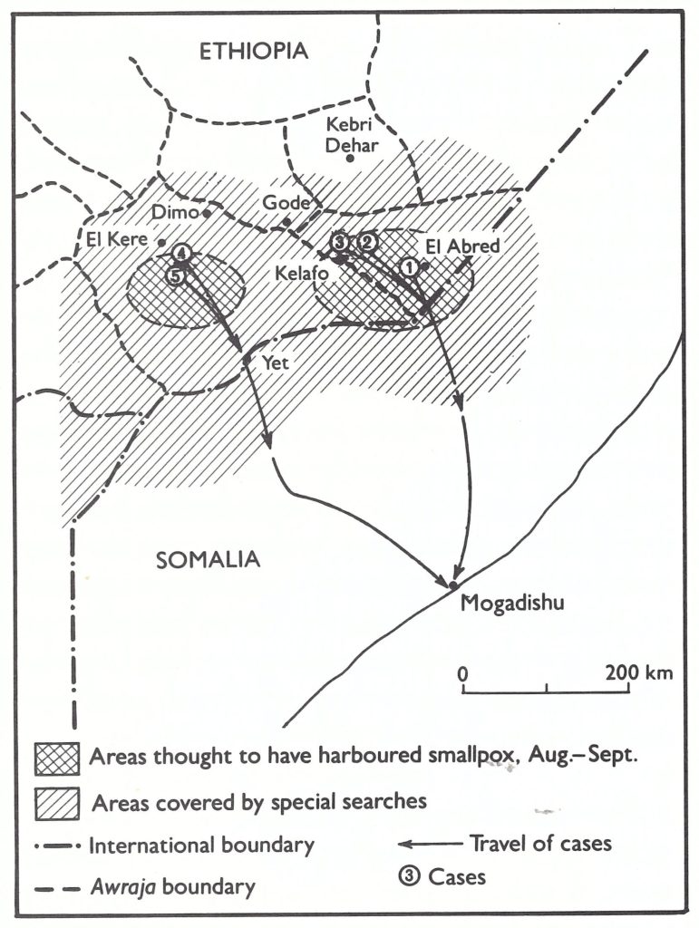 For Somalia at that time to admit to the existence of cases was awkward for both the political leaders and the national health staff. With tension mounting between Somalia and Ethiopia, the periodic meetings of national smallpox eradication staff from the two countries at border posts had become increasingly acrimonious, as each expressed doubts about the quality of the other’s programme. In September, Somali programme staff simply did not believe that Ethiopia had become smallpox-free. A letter dated 11 November