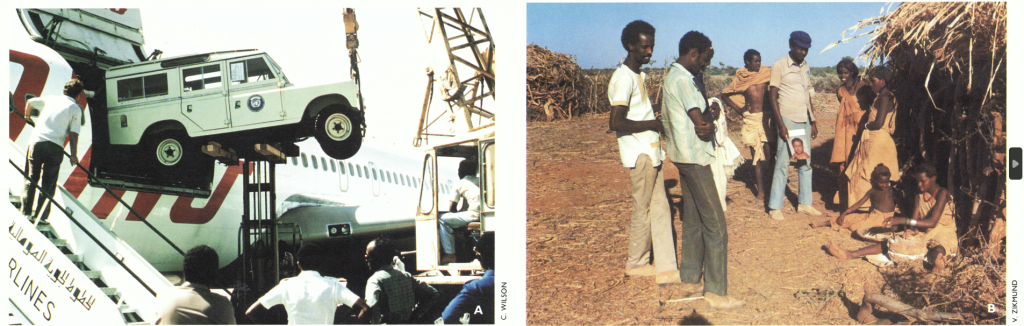 Plate 22.9. A: Airlifted vehicles being unloaded in Mogadishu for the emergency programme in Somalia in 1977. B: Somali search teams inquiring for rumours of possible cases of smallpox.