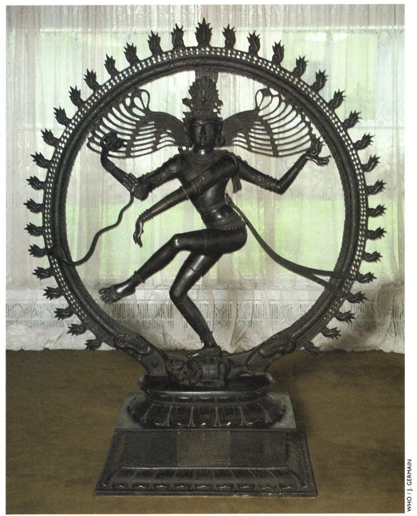 Plate 31.3. Dr Karan Singh, the Indian Minister of Health and Family Planning, presented the World Health Organization with this bronze statue of Nataraj on 15 August 1975, celebrating at once India’s Independence Day and her freedom from smallpox. The statue is now in the Executive Board lounge at WHO Headquarters