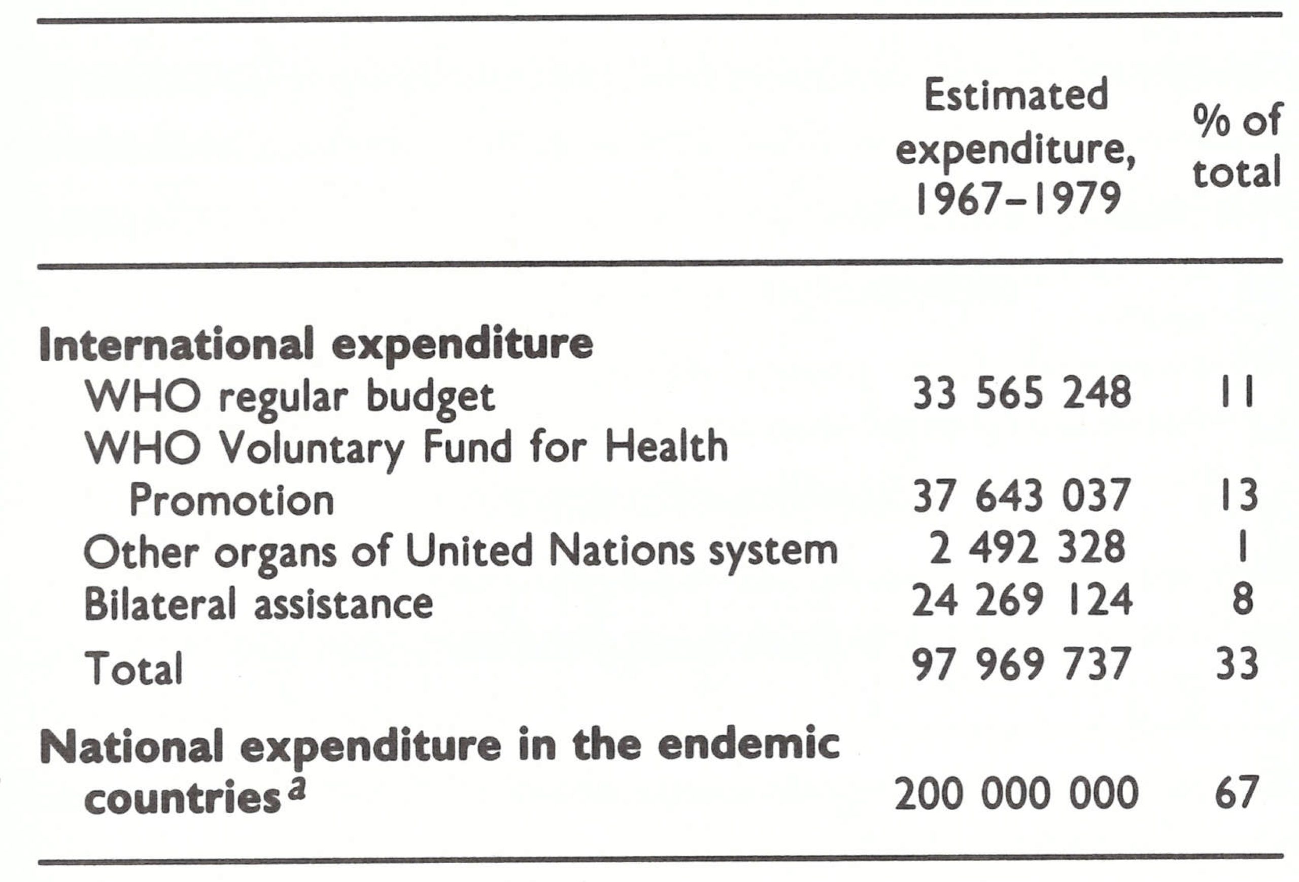 Table 31.3: Expenditure on smallpox eradication, 1967-1979 (US$)a