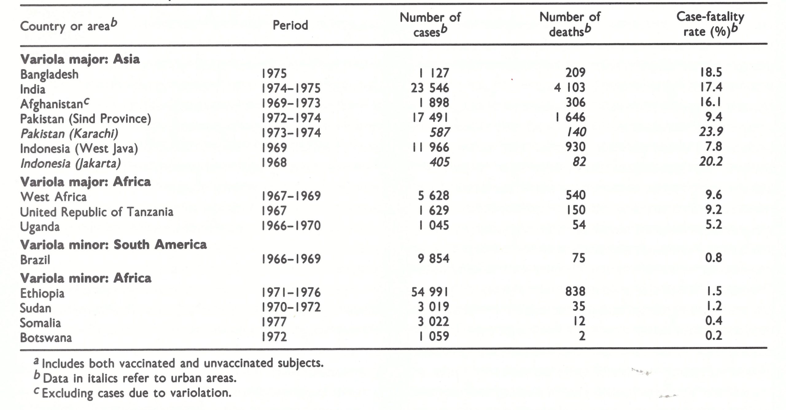 Table 4.6: Case-fatality rates of smallpox in different geographical areas (data from country reports submitted prior to certification of eradication of smallpox)a