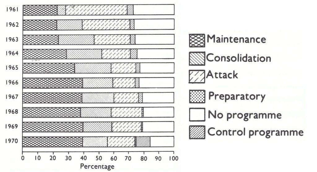 Between 1959 and 1966, lack of interest on the part of WHO in smallpox eradication and the perceived lack of progress in the programme must be attributed, in large measure, to WHO’s preoccupation, as well as that of many Member States, with malaria eradication. Over this period, the persistent advocacy of smallpox eradication by the USSR in the World Health Assembly served to sustain interest in such a programme on the part of Member States, even though the Organization assigned few resources to it. Renewed interest in the programme was stimulated by the commitment of the USA in 1965 to support regional smallpox eradication programmes in a contiguous group of countries in western and central Africa, a decision which was less a product of rational policy analysis than a reluctantly accepted byproduct of a regional measles vaccination campaign.