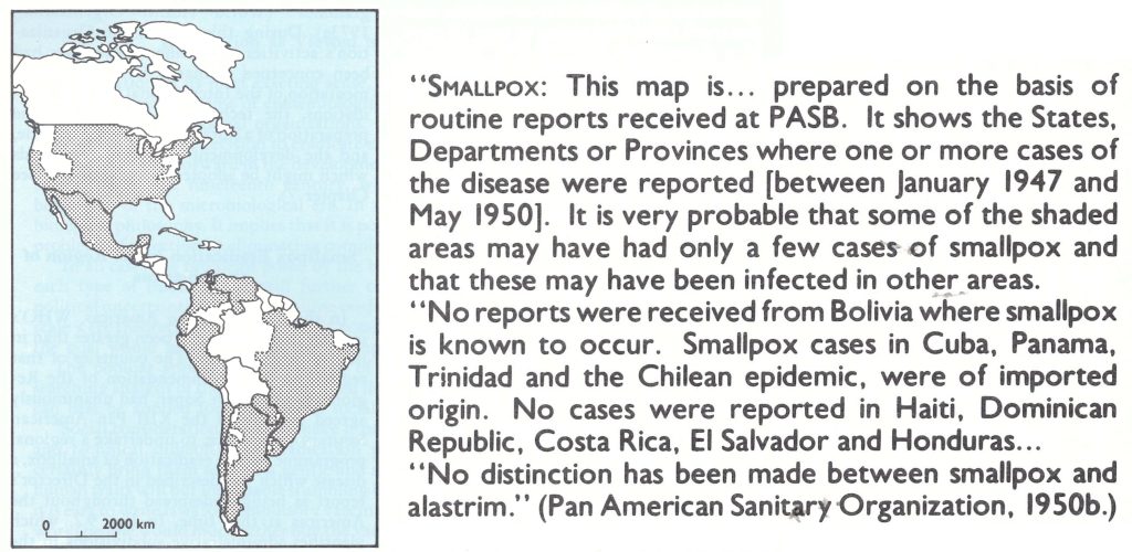 The first to call for regional smallpox eradication was the Pan American Sanitary Organization in 1950, and although its programme was reasonably successful as far as it went, it was not actively promoted or diligently pursued. In part, this reflected Dr Soper’s preoccupation with eradication of the Aedes aegypti mosquito and, later, with malaria eradication. The lack of vigour can also be attributed to the fact that the largest endemic country was Brazil, in which the prevailing mild variola minor was not an important public health problem.