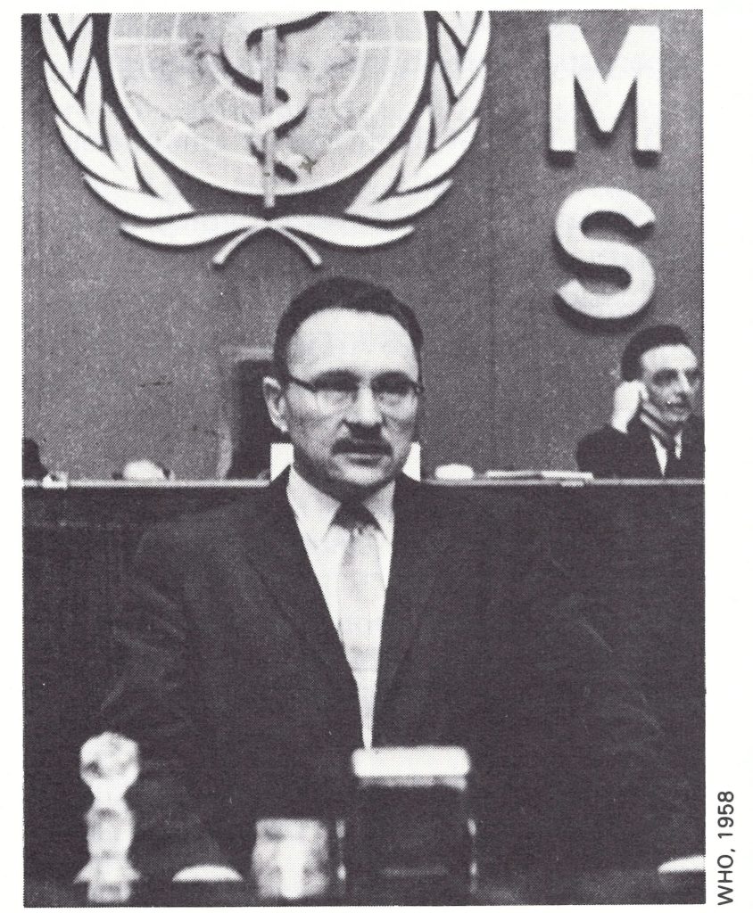 From 1955 to 1958, the issue of smallpox eradication lay dormant but, at the Eleventh World Health Assembly, Professor Viktor Zhdanov, Deputy Minister of Health of the USSR and a delegate to the Health Assembly, presented a formal, lengthy report which argued that the problem of smallpox was an important one for endemic and non-endemic countries alike, that eradication was theoretically feasible and that national programmes had demonstrated it to be a practicable possibility (World Health Organization, 1958a). The report concluded: “AS regards its complete eradication throughout the world, we think that this can be achieved within the next ten years.” No reference was made to an 8-year-old regional programme for smallpox eradication in the Americas nor to the Health Assembly’s earlier discussions on smallpox. The USSR had not participated in those discussions, however, having withdrawn from active participation in WHO from 1948 to 1957.