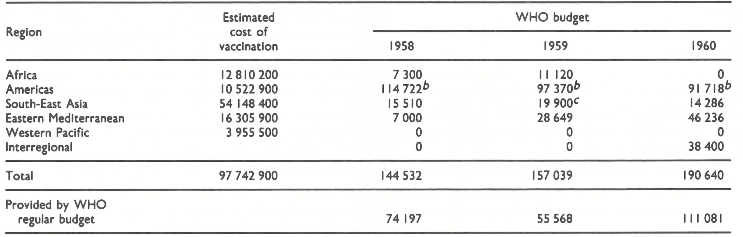 Table 9.1: Estimated cost of smallpox eradication as at 1959, and budget for smallpox programmes, 1958-1960 (US$)a