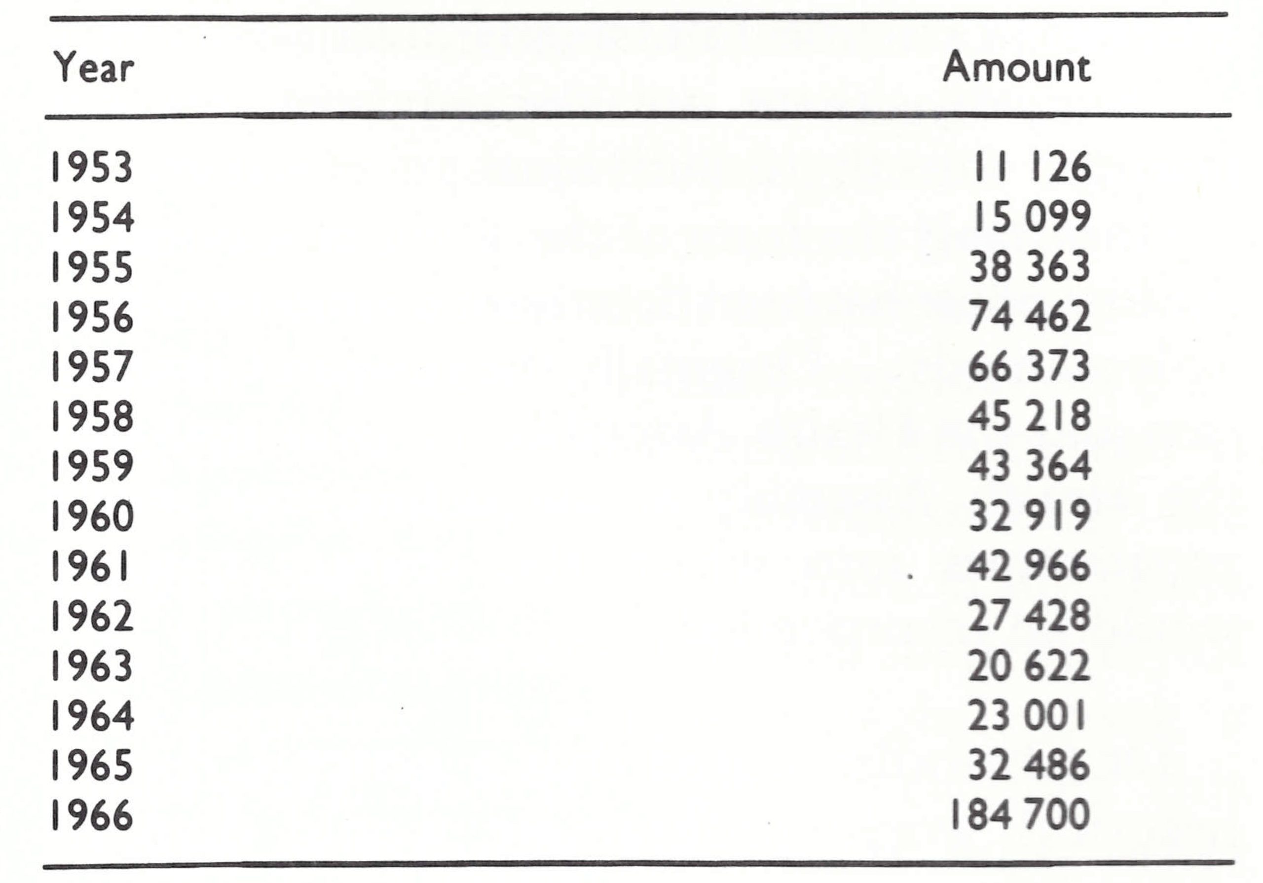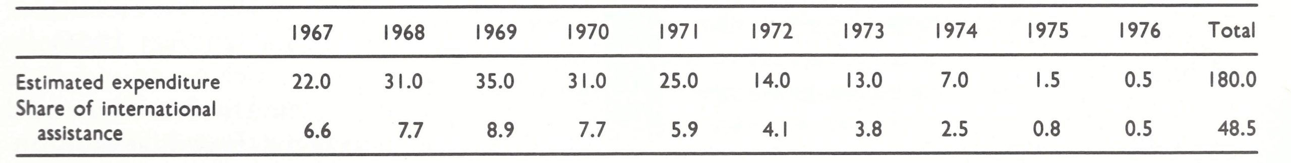 Table 9.12: Anticipated expenditure on the Intensified Smallpox Eradication Programme, 1967-1976 (millions of US$); extracted from the Director-General’s report to the Nineteenth World Health Assembly