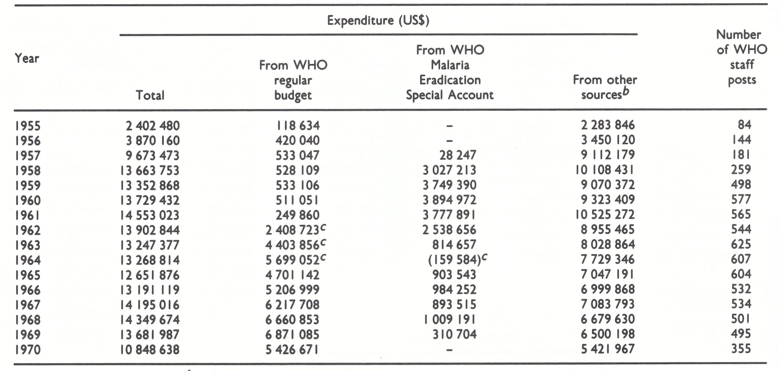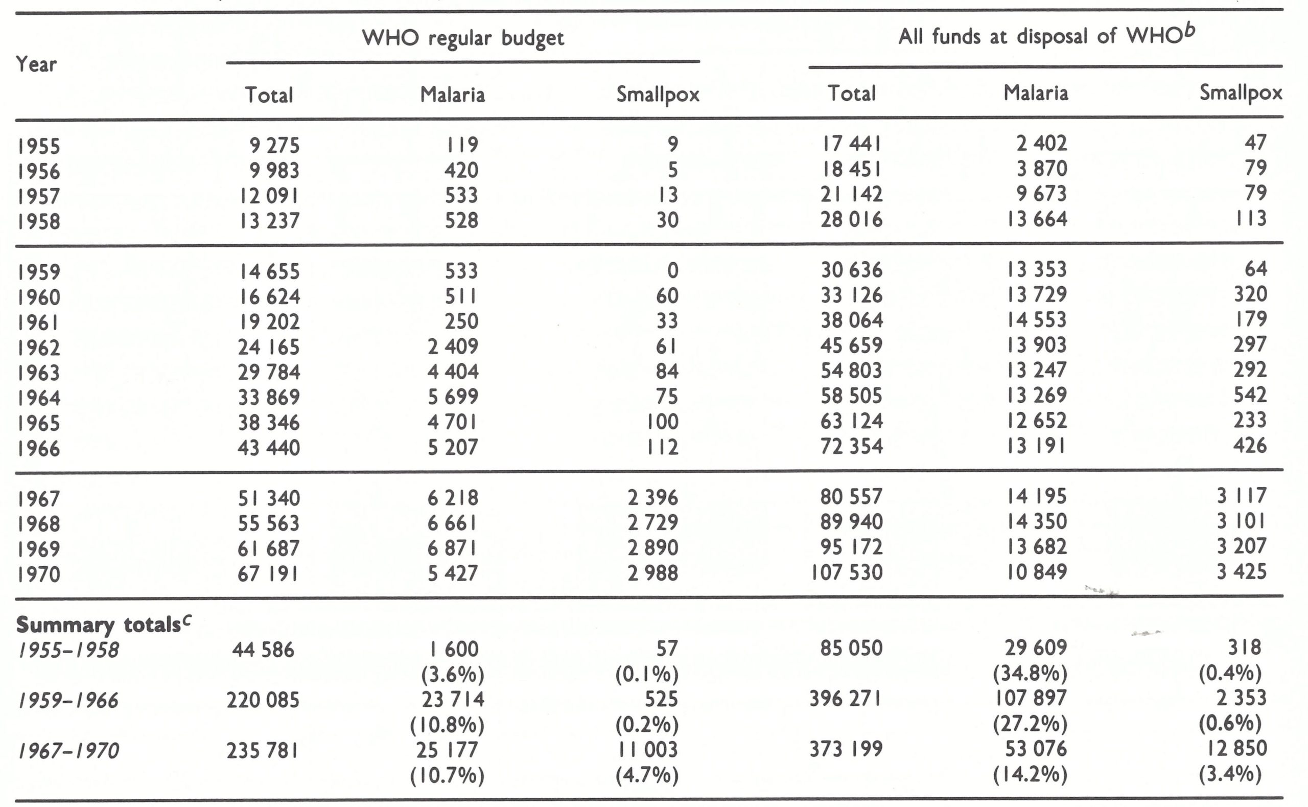 ‘‘Malaria eradication seemed to have been the favourite daughter of WHO, whereas smallpox eradication seemed to have been treated rather as a foster child…criticism might have been averted if concrete measures had been included in the 1966 programme…The delegation of the USSR would support any concrete proposal for speeding up the programme, but it wished for a real programme.” (World Health Organization, 1965c.)