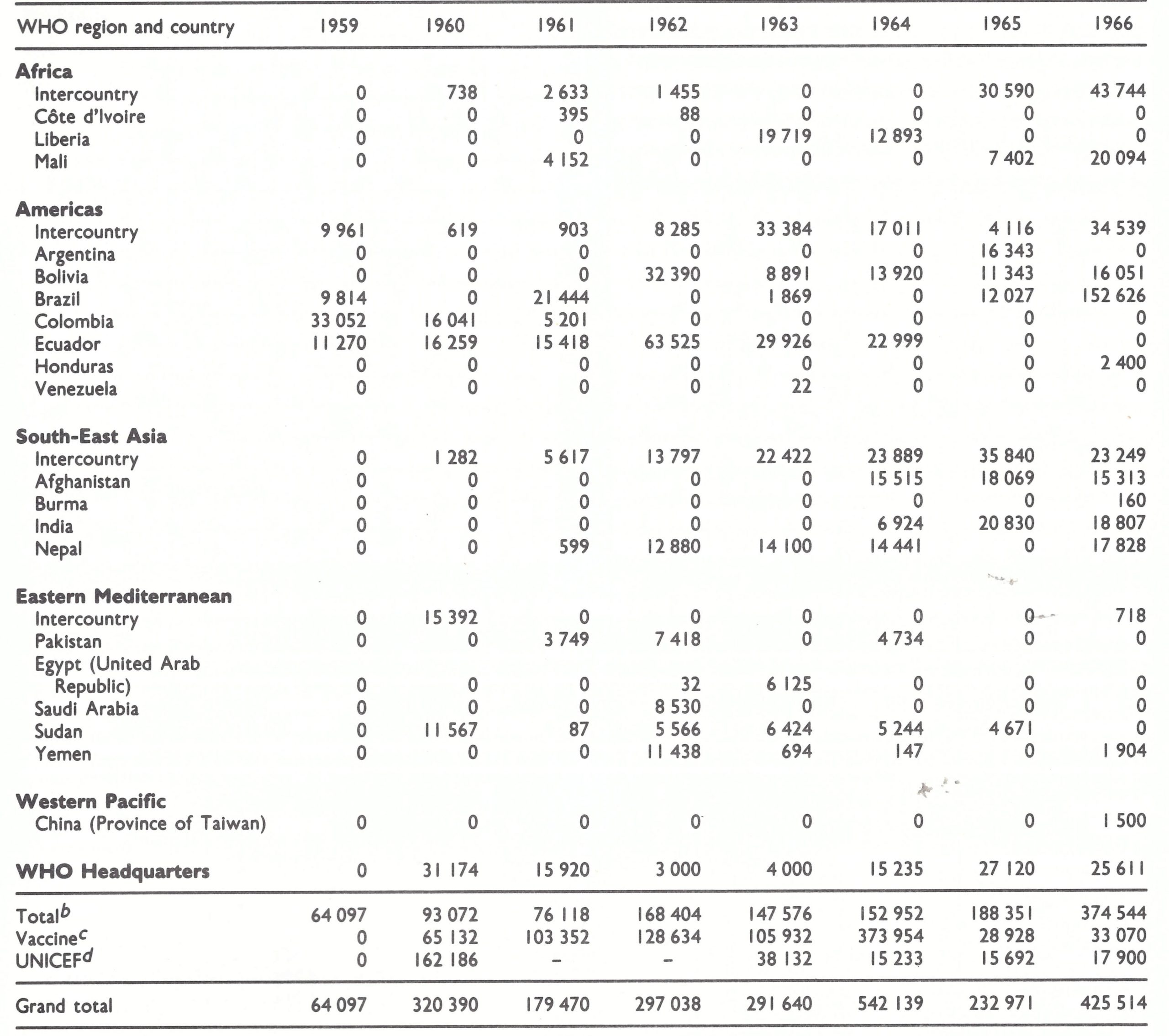 b Includes both WHO and PAHO funds, most of which were allocated to a yaws-smallpox eradication programme in Haitl.