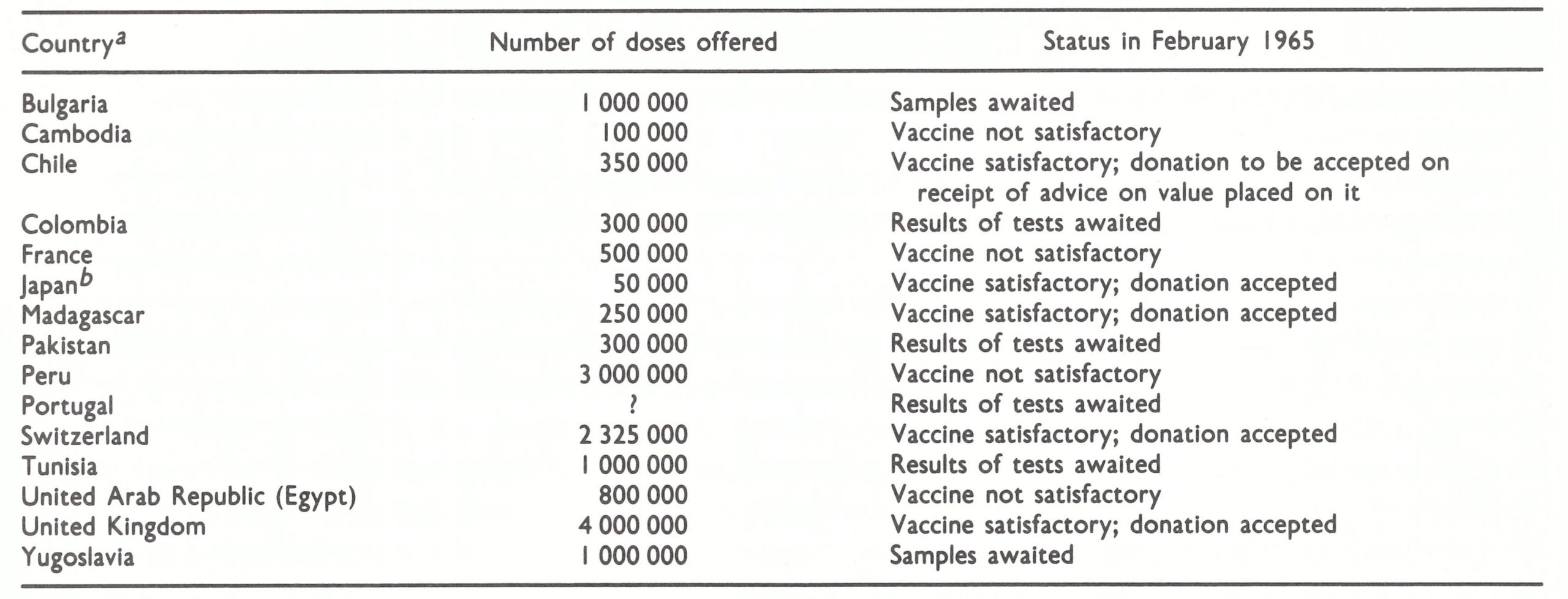 3. Supplies of heat-stable freeze-dried vaccine in very large amounts and also transport, refrigeration and other equipment were needed, as well as short- and long-term consultants for the planning and execution of the campaigns.